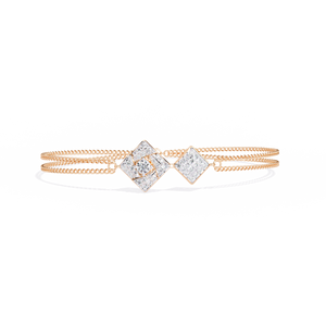 Crafted in 14K gold, this flexi bracelet features two square diamond clusters joined in a seamless, geometric design. The double-chain detail adds an elegant touch, making it perfect for refined, modern styling with a hint of sparkle.