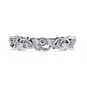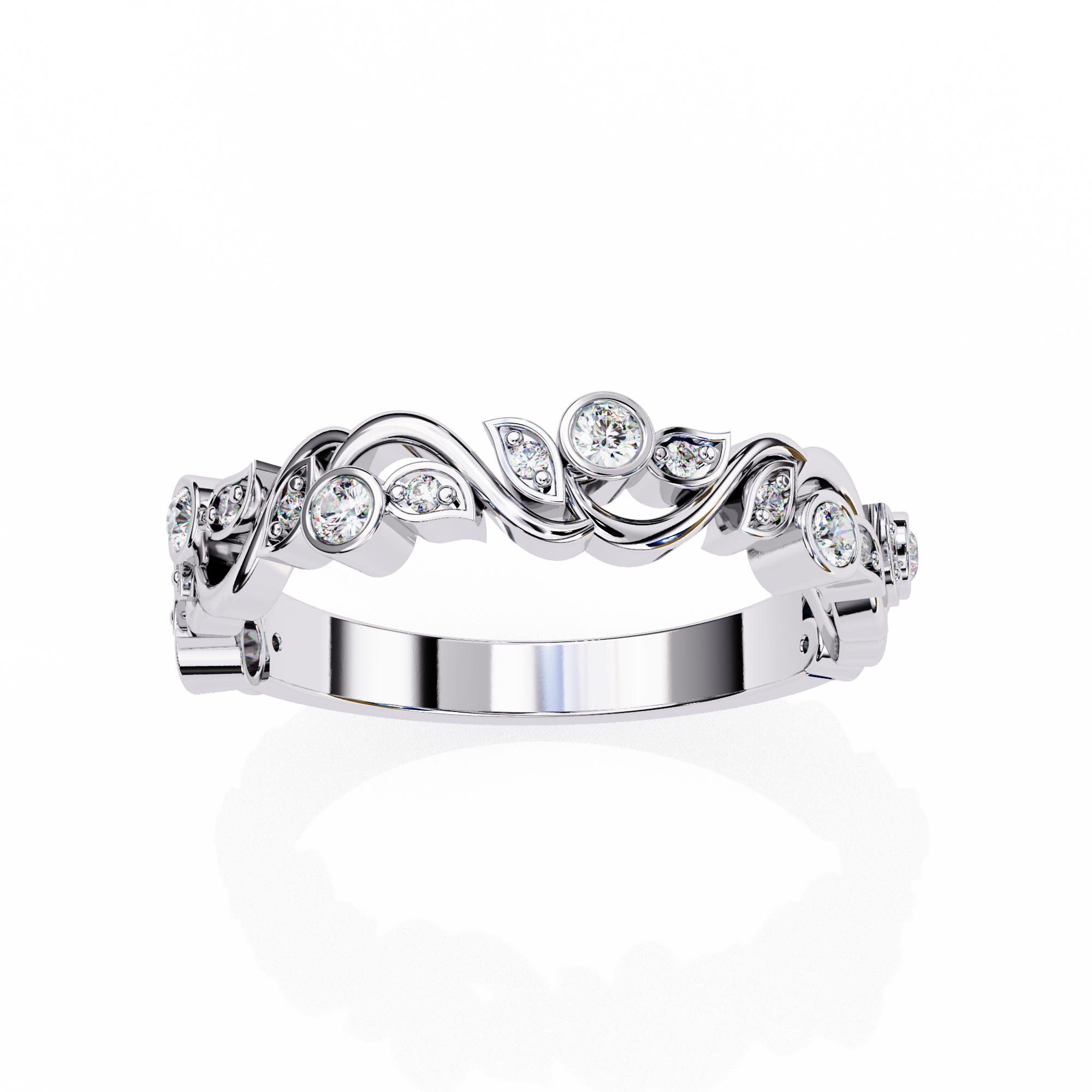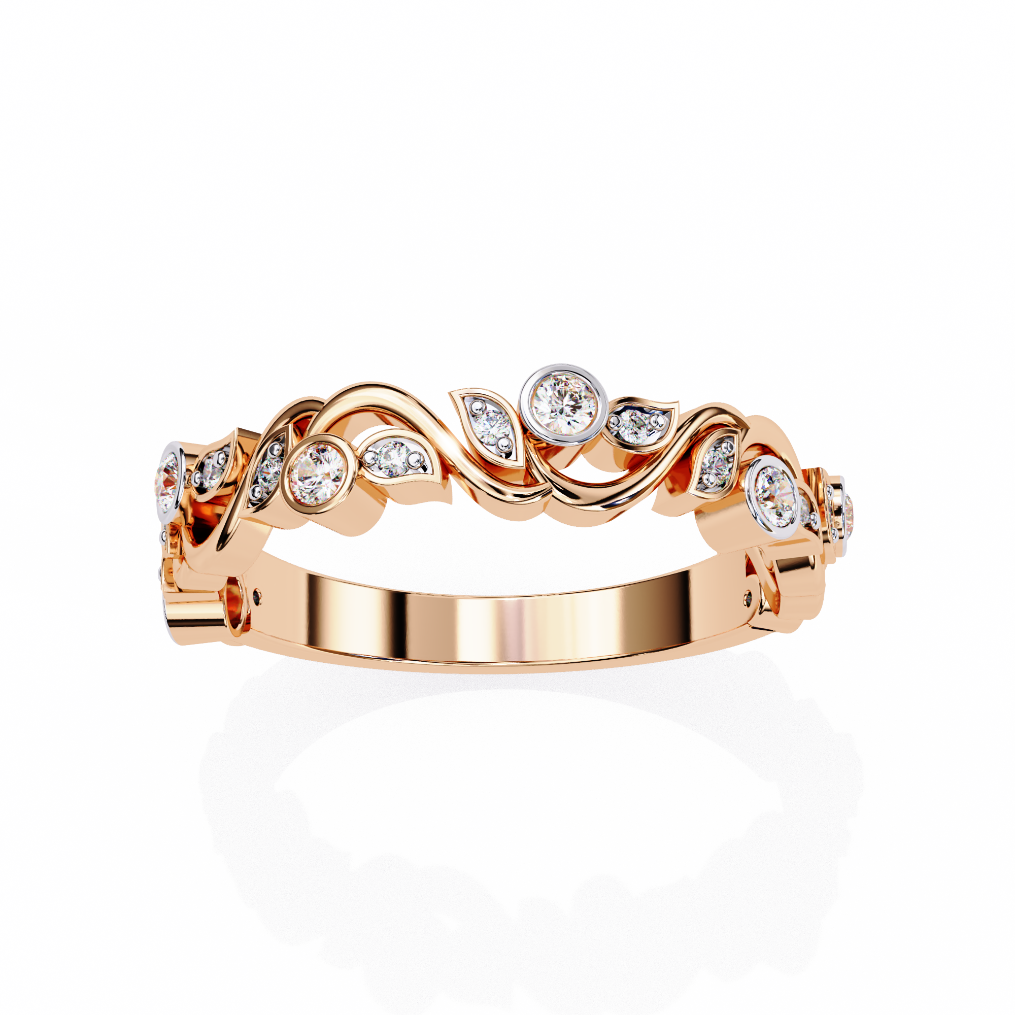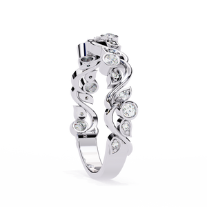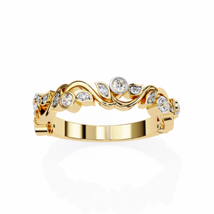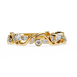 Gracefully designed with intertwining vines and marquise leaf motifs, this 14K diamond eternity band captures nature’s elegance in a timeless silhouette. Each leaf is adorned with bezel-set and prong-set round brilliant diamonds, symbolizing eternal growth and harmony. Perfect as a wedding band, anniversary ring, or a statement piece for everyday wear, it beautifully blends organic artistry with refined craftsmanship.